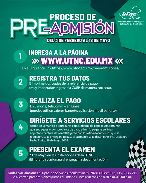 Correo: preadmisiones@utnc.edu.mx