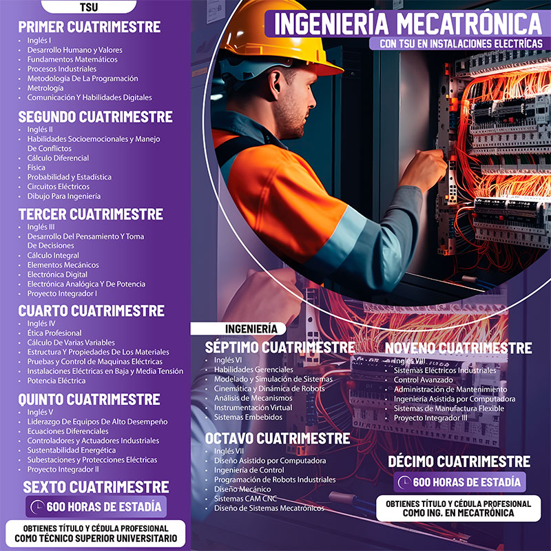 TSU INSTALACIONES ELÉCTRICAS Plan de estudiosPlan de estudios – Inglés Descargar plan de estudio IMT IE IMT_IE.pdf 213.8 KiB 4 Downloads Detalles Category:PLAN_ESTUDIOS Fecha:febrero 26, 2026 MAYORES INFORMES EN: Edificio Docencia 1 Teléfono: (878)-782-6300 Ext. 127 Correo: mtaieeymtasmf@utnc.edu.mx Director: Ing. Jorge Luis Aguilar Martínez